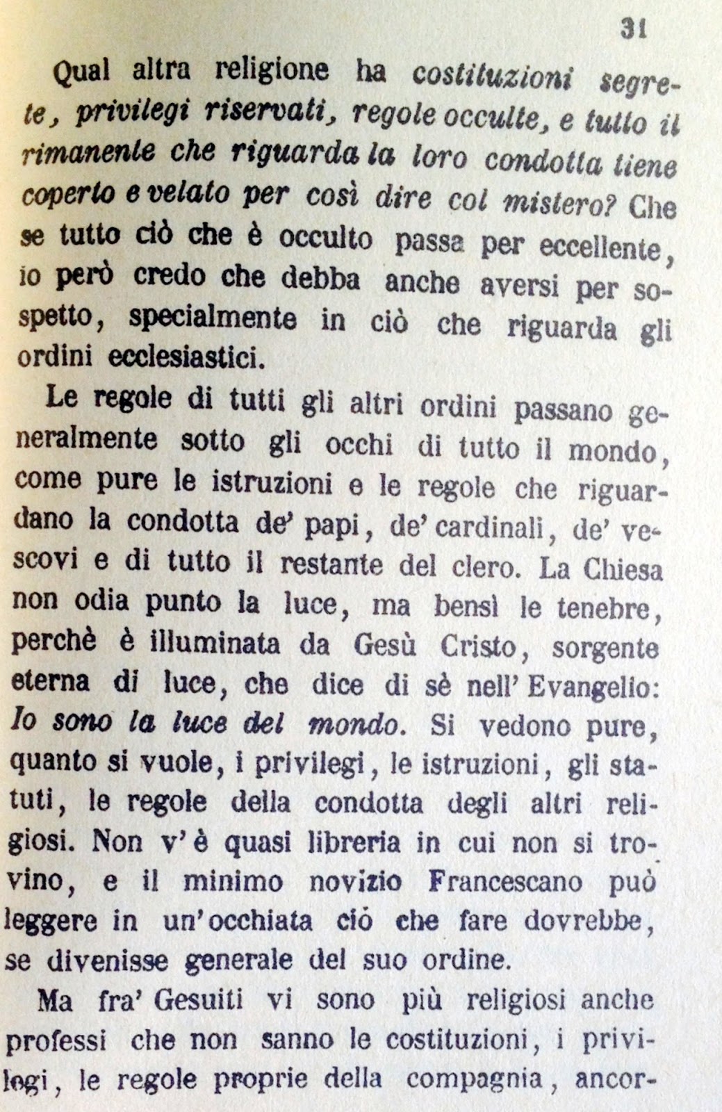 | "... si dimostri che i religiosi degli altri ordini non soddisfano alle loro funzioni...." |